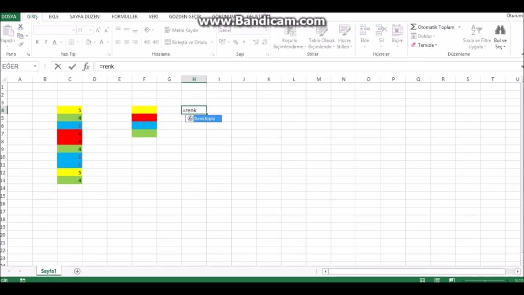 Excelde renklere göre hücreleri toplama nasıl yapılır?