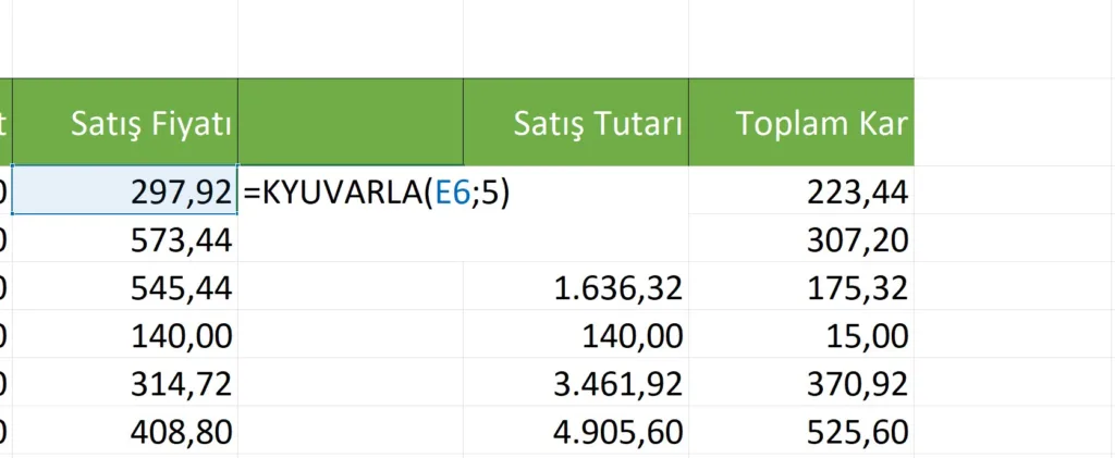 Excelde Sayıları Belirli Katsayıya Yuvarlama Formülü
