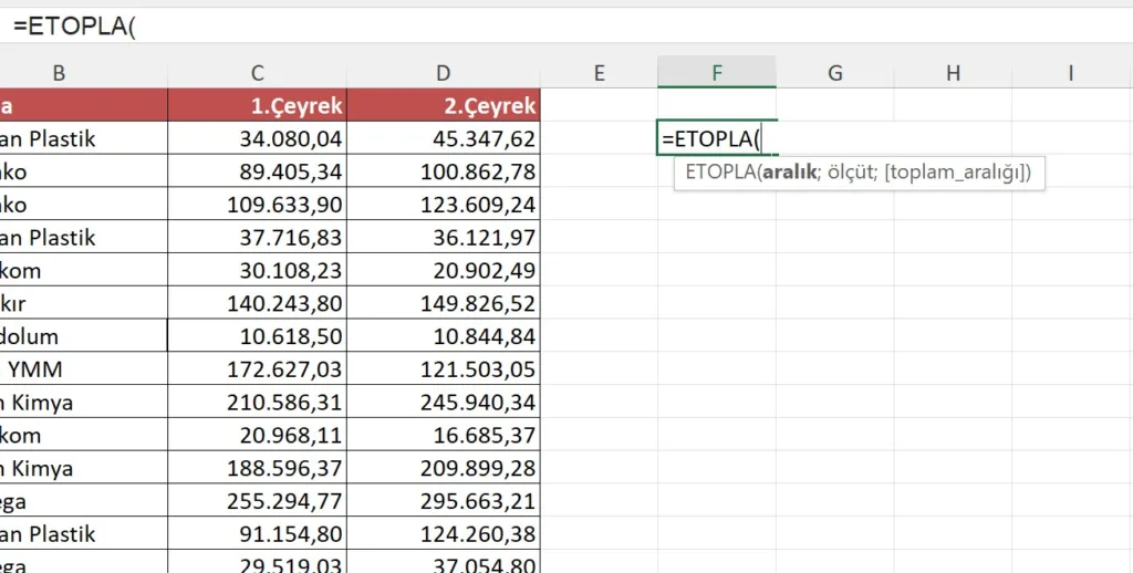 Excel ETOPLA Formülü: Şarta Bağlı Toplam Alma Teknikleri