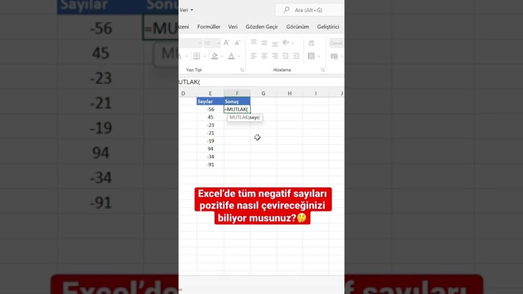 1. Excelde negatif sayıları pozitif nasıl çevirebilirim?
