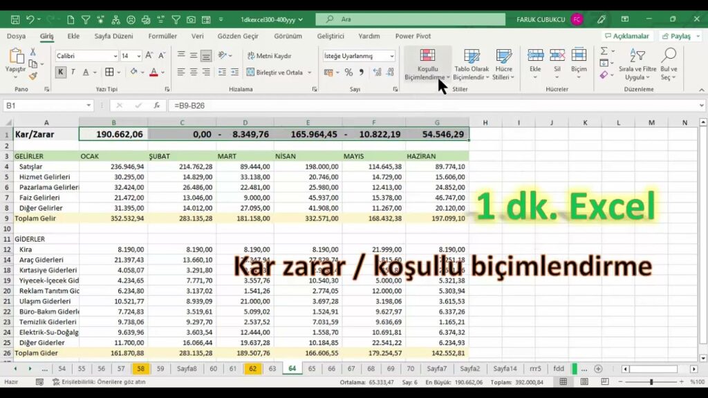 Excel Kar Zarar Tablosu nasıl analiz edilir?