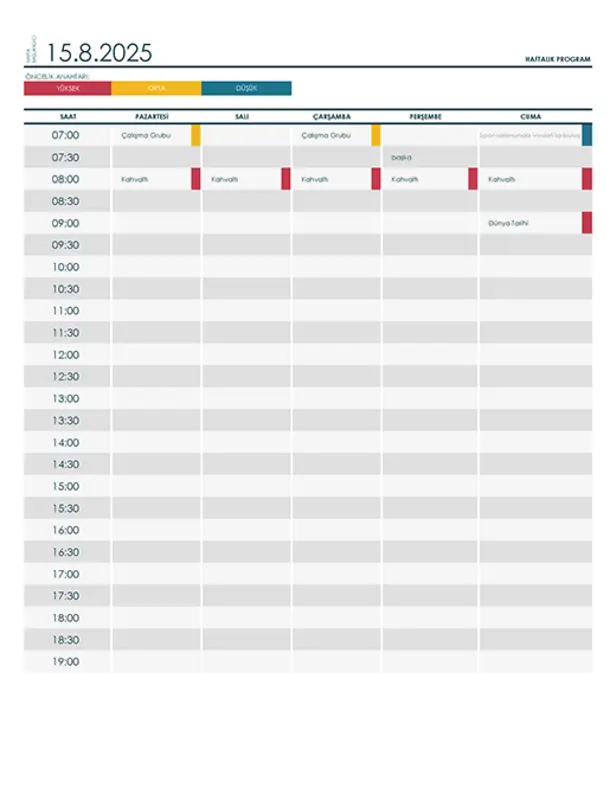- Haftalık Çizelge Şablonları