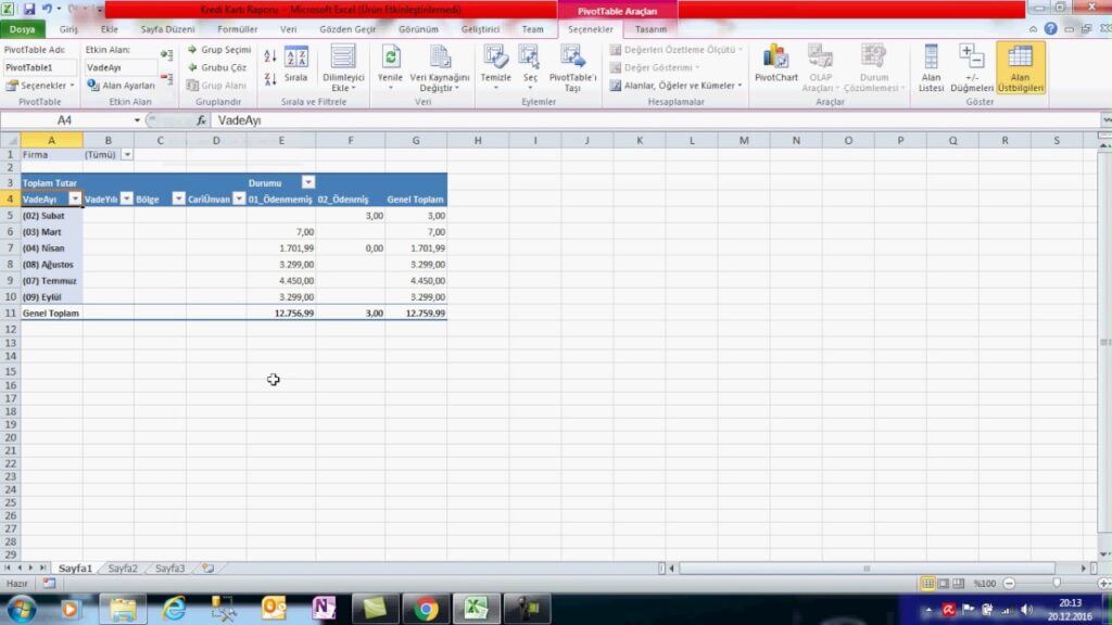 Excel ile Taksit Takip Programı Oluşturma